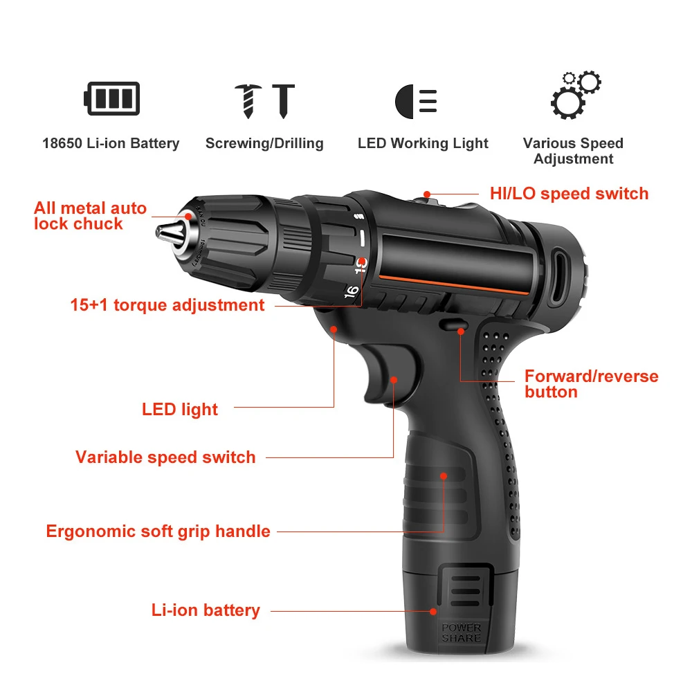 12V Perceuse Sans Fil Tournevis Électrique Mini Sans Fil Puissance Pilote DC Batterie Au Lithium-Ion