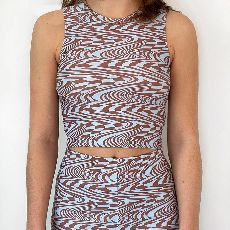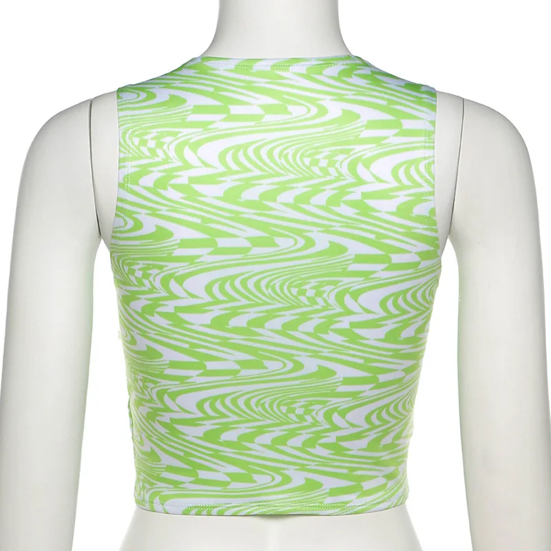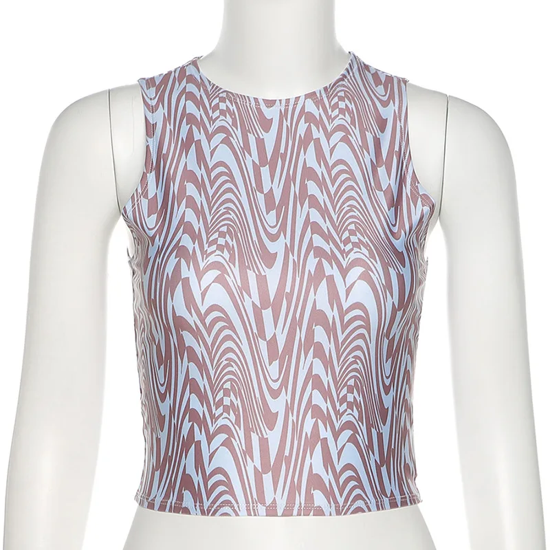 90s Aesthetics Striped Print Crop Top Y2K Summer Streetwear Sleeveless O-neck Brown Baby Tanks Women 2021 Summer Sexy Vests Tops