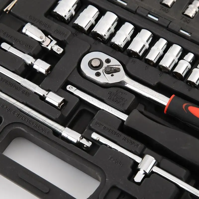 Jeu de clés pour réparation de voiture, clés à cliquet, à douille, tournevis, kit d’outils professionnels pour le travail des métaux, 46 pièces