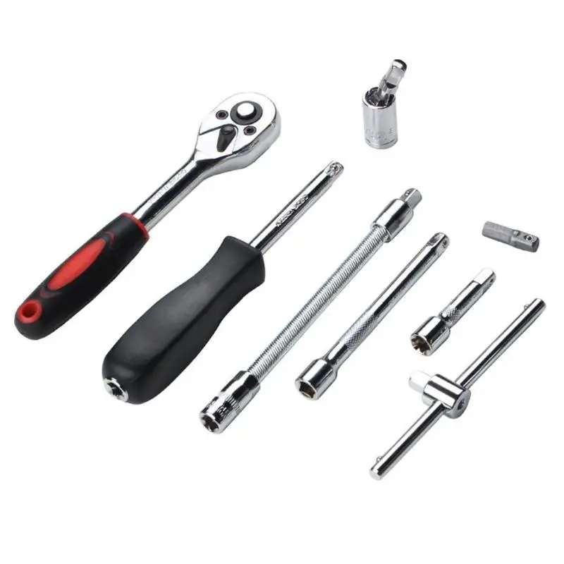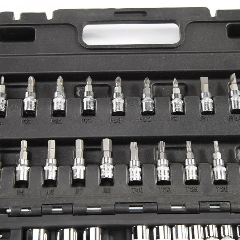 1. La poignée de tournevis peut rencontrer la tête de lot (croix T type tête de prise de fleur de prunier six angle tige d’extension joint universel peut recevoir tige de pliage) 2. La douille est faite d’acier au chrome vanadium de haute qualité 50 BV30 pressé à froid, et le couple est 50% supérieur à celui de l’acier au carbone. La surface est traitée avec une mauvaise qualité et une surface lisse, et l’effet antirouille est bon. La tête de lot est faite de matériel de CR-V, avec la dureté plus élevée et la dureté plus élevée. 3. La clé à cliquet à chute rapide (réglable positif et négatif), la fonction de libération rapide du bouton garantit que la douille THT est verrouillée en toute sécurité pendant l’utilisation, mais il permet également un retrait facile ou un remplacement rapide de la prise EVEV doigt huileux ou huileux. Notre roue à cliquet 45 dents de haute qualité peut améliorer la vitesse de fonctionnement. Est un accélérateur ouvert, dans la climatisation, écrou de siège, garde-boue de pneu, serrure de porte, ménage (essentiellement inclus) souvent utilisé dans un ensemble de petites vis et écrous l’ensemble idéal d’outils. Spécifications: