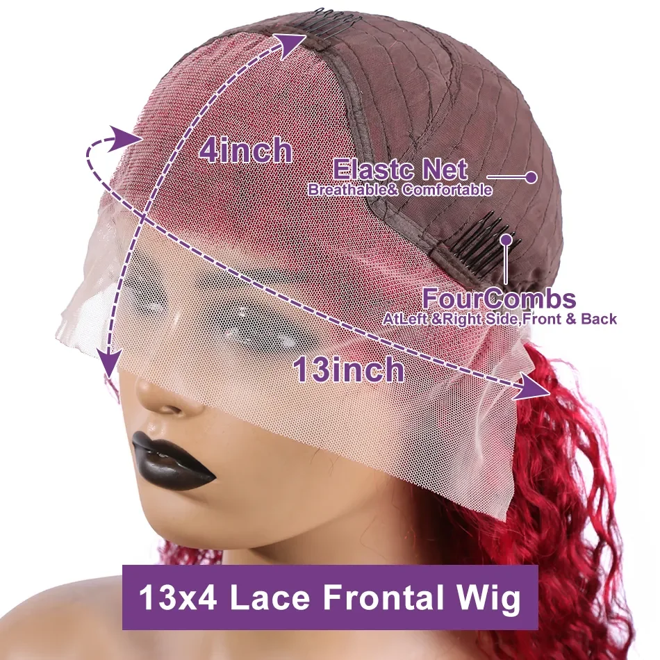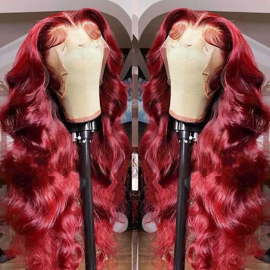 Rosabe-Perruque Body Wave Lace Front Wig Naturelle pour Femme, Cheveux Humains, Couleur Rouge, Densité 250, 99J, Bordeaux, 13×4, 13×6, HD, 40 Pouces