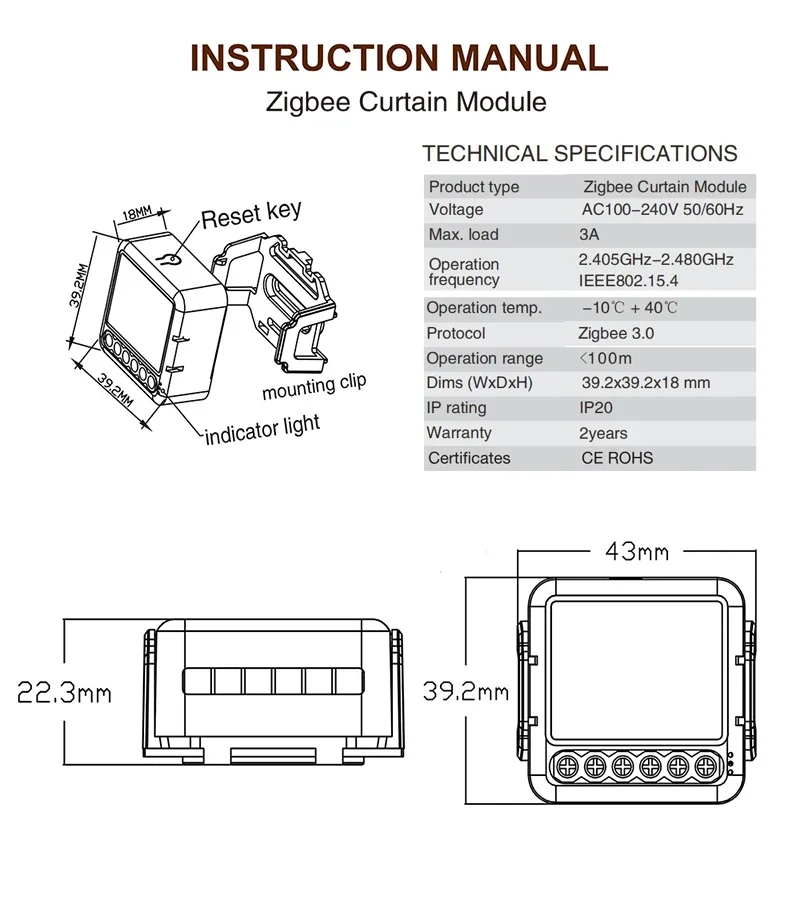 Type de produit: module de rideau Wi-Fi/Zigbee