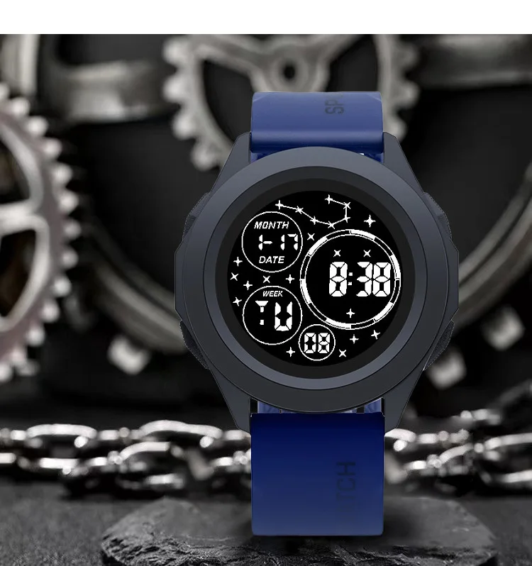 - Caractéristique: chronomètre,lumière arrière,Affichage LED,Répéteur,Luminous,Chronographe,Calendrier complet,Résistant à l'eau,ALARME,Affichage de la semaine