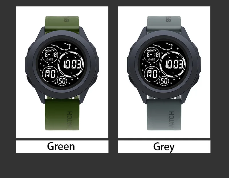 Montre numérique: Design de cadran sportif à la mode. Le grand cadran et les chiffres avec la lumière, montrent l’heure claire dans l’obscurité. Facile à voir l’heure clairement à la lumière, facile à lire.